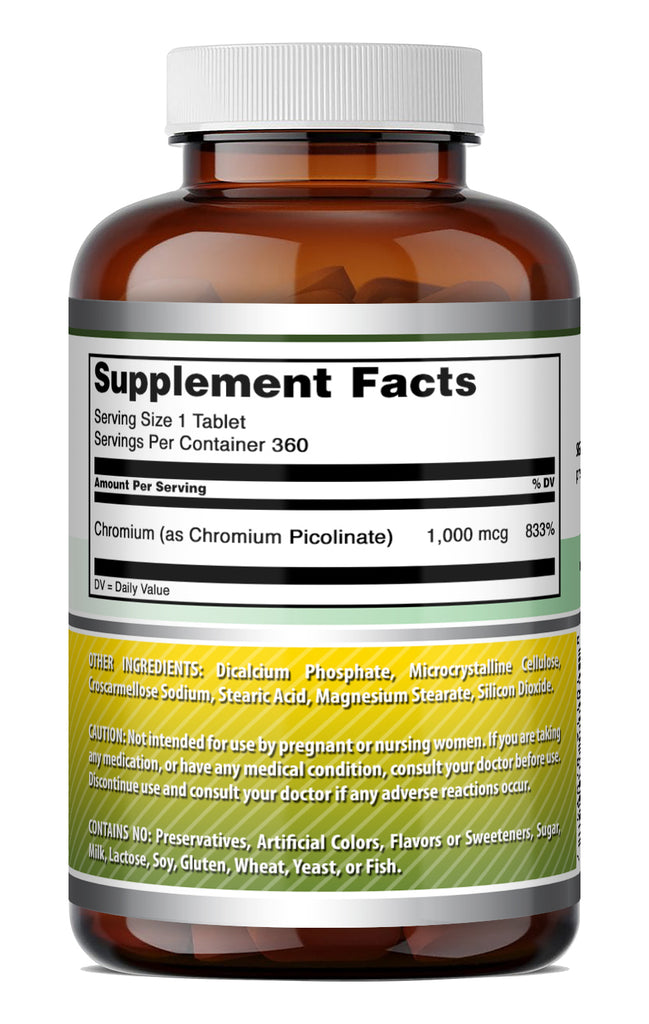 - Chromium Picolinate 1,000 Mcg per Serving Supplement