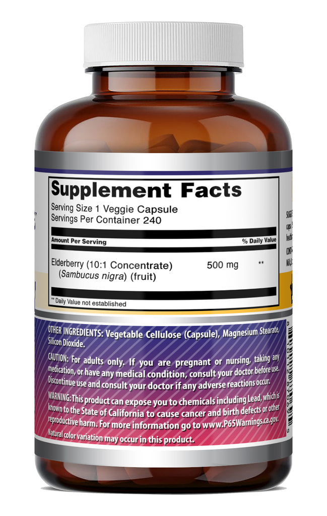 - Elderberry (Sambucus Nigra 10:1 Concentrate) 500 Mg per Serving Supplement