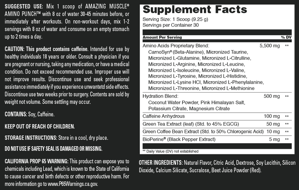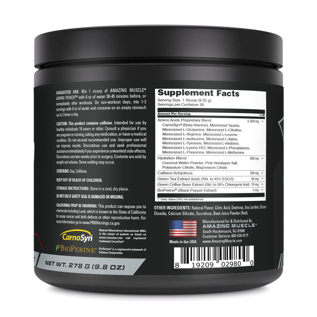 Amazing Muscle Amino Punch | Fruit Punch | 30 Servings | 9.8 Oz | 9.25 Grams per Serving