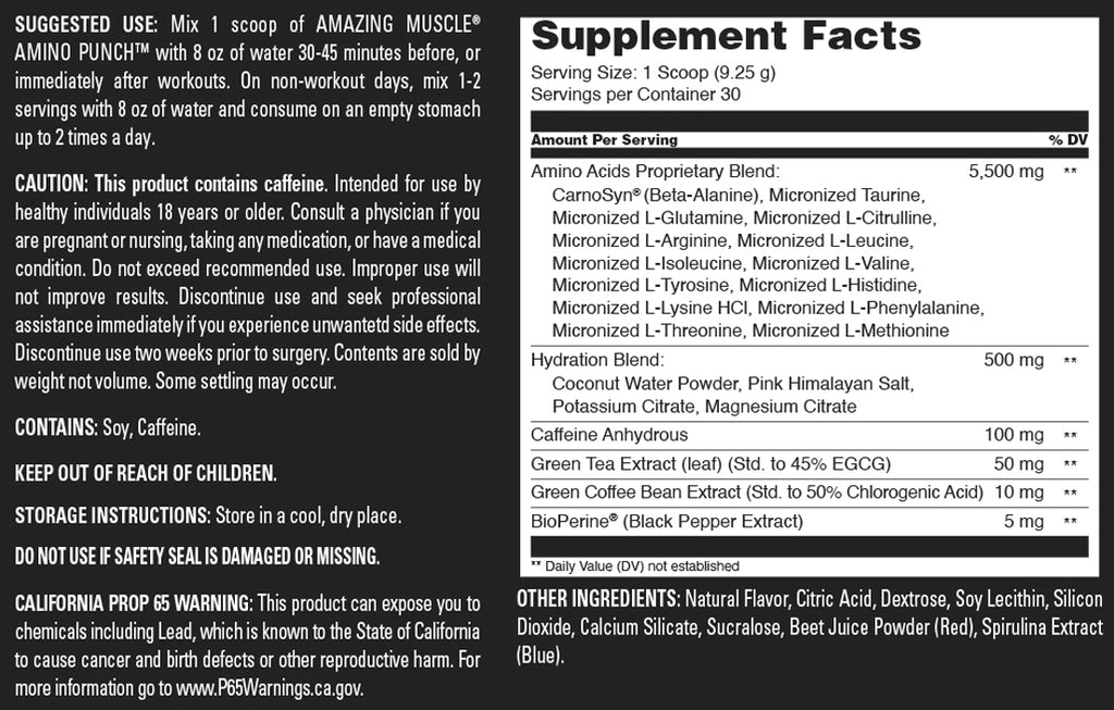 Amazing Muscle Amino Punch | Wild Berry | 9.8 Oz | 30 Servings | 9.25 Grams per Serving