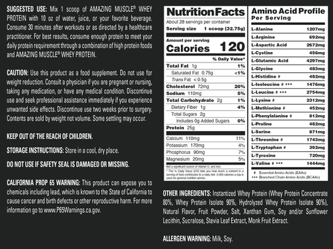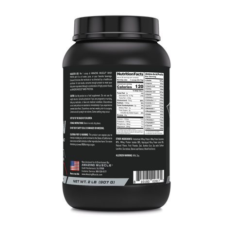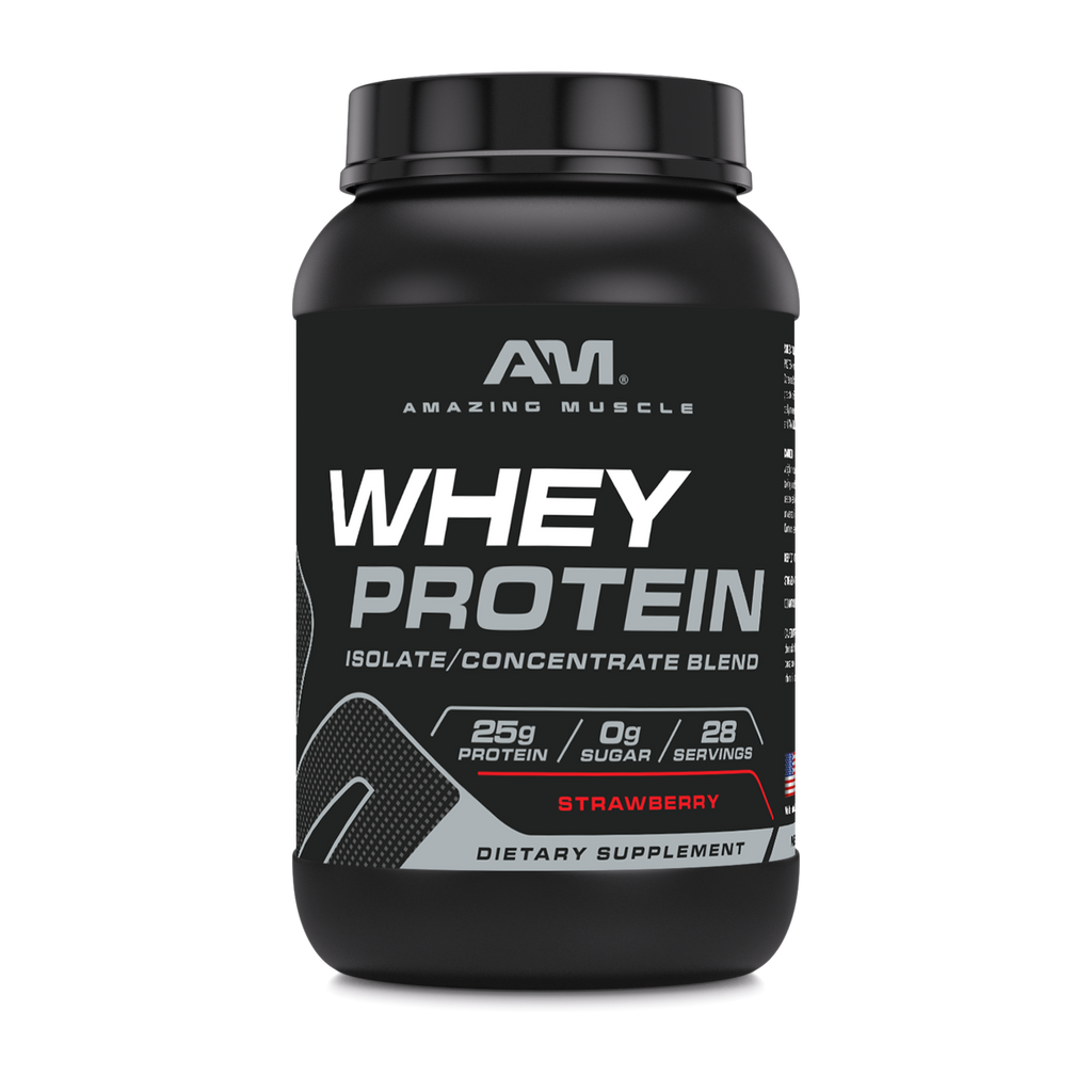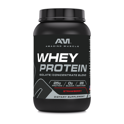Amazing Muscle Whey Protein Isolate & Concentrate Powder | Strawberry Flavor | 2 Lb | 25 G Protein per Serving | 28 Servings