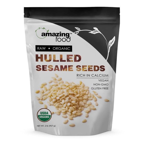 Amazing Food Hulled Sesame Seeds | 2 Lb | 16 Grams per Serving | 56 Servings | USDA Organic