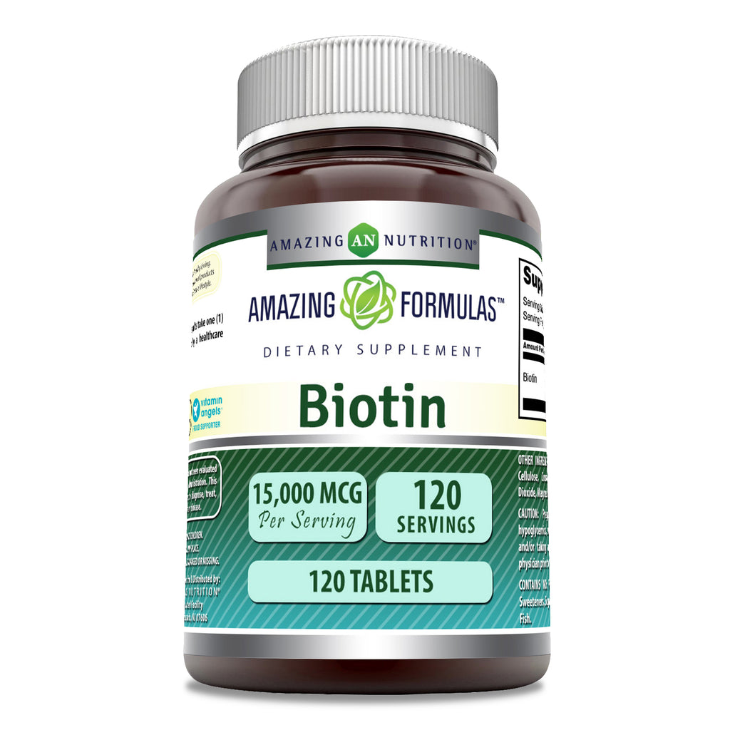 Biotin, is a water-soluble vitamin that’s a part of the vitamin B complex — a group of key nutrients needed for numerous functions in the body. Amazing Formulas offers biotin in 15,000 mcg easy to swallow capsules. Most people get enough biotin naturally, but it’s possible to have a deficiency.
