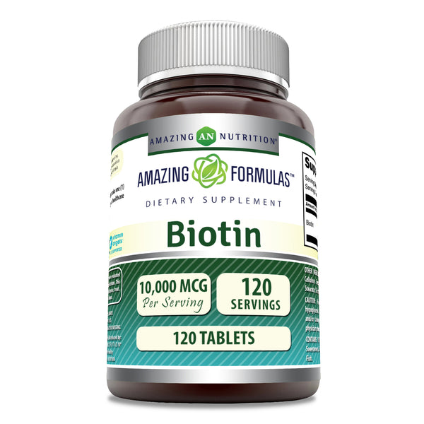 Biotin, is a water-soluble vitamin that’s a part of the vitamin B complex — a group of key nutrients needed for numerous functions in the body. Amazing Formulas offers biotin in 10,000 mcg easy to swallow capsules. Most people get enough biotin naturally, but it’s possible to have a deficiency.