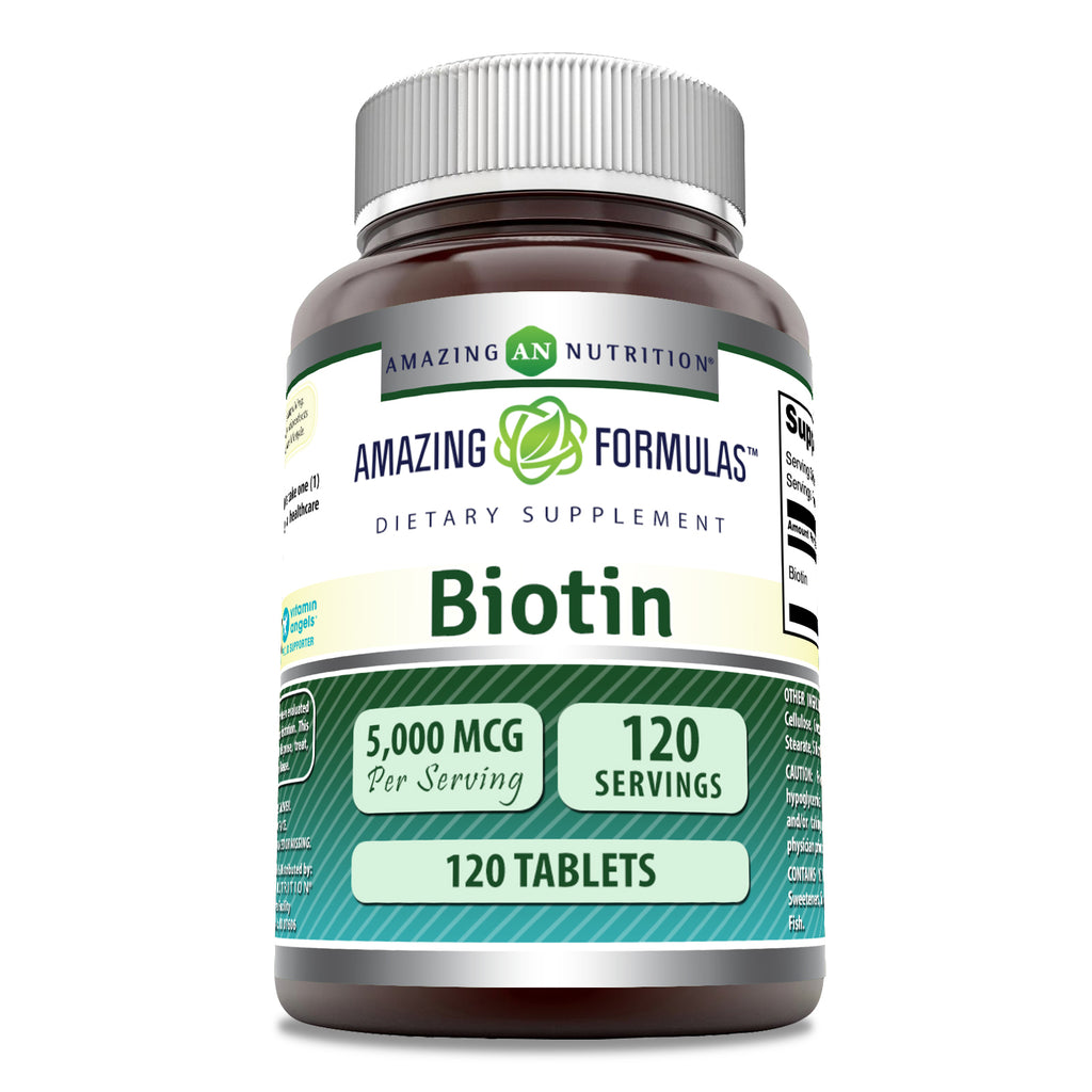 Biotin is a water-soluble vitamin that’s a part of the vitamin B complex — a group of key nutrients needed for numerous functions in the body. Amazing Formulas offers 5,000 mcg biotin in each tablet.