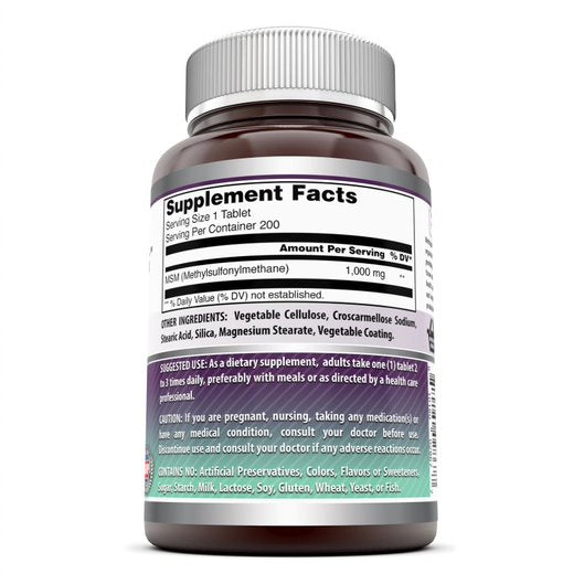 Each one-tablet serving of this Amazing Formulas MSM Dietary Supplement provides 1000 mg of methylsulfonylmethane. MSM is frequently recommended for promoting healthy joints and bones. It is also often used for skin, nail and hair health and for healthy aging support. *