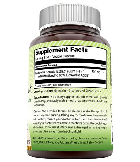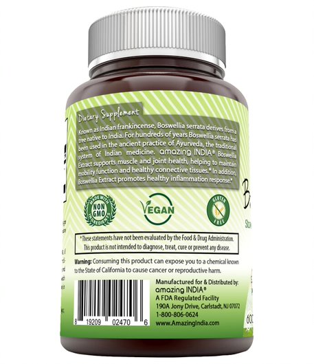 Amazing Nutrition Boswellia Extract Supplement is free of artificial preservatives, colors or flavors of any kind. It's the natural choice of boswellia supplement for your healthy diet.
