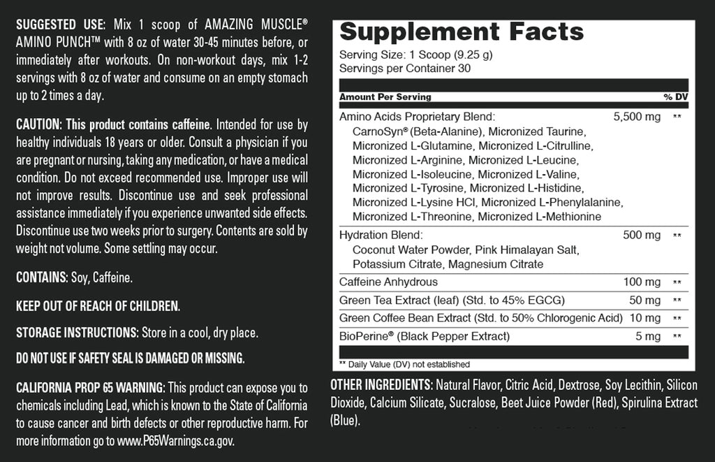 Amazing Muscle Amino Punch | Blueberry Pomegranate Blast | 30 Servings | 9.8 Oz | 9.25 Grams per Serving
