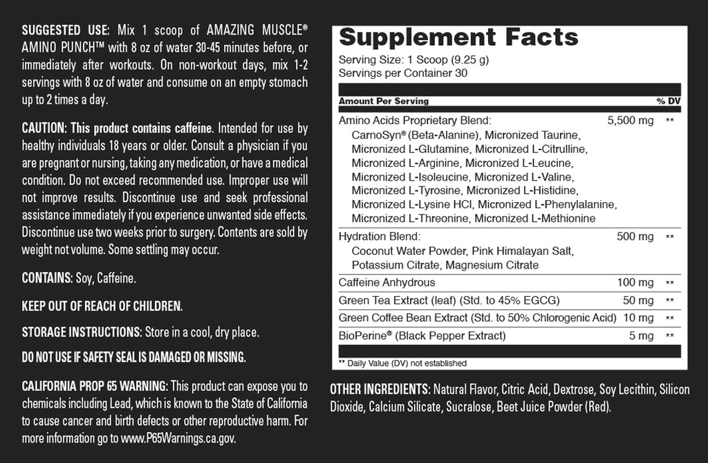 Amazing Muscle Amino Punch | Strawberry Splash Flavor | 30 Servings | 9.8 Oz | 9.25 Grams per Serving