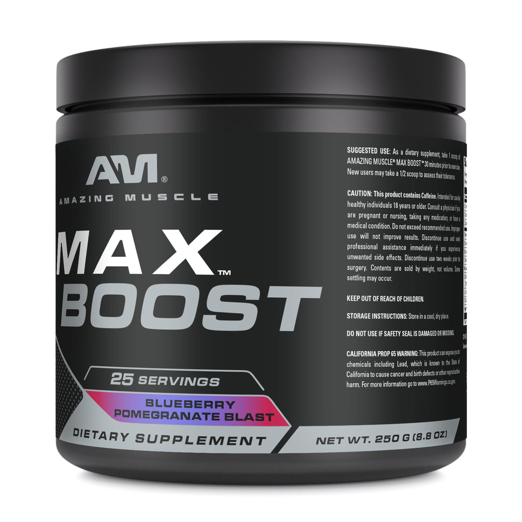 Amazing Muscle Max Boost | Intense Pre-Workout Supplement | 25 Servings| Blueberry Pomegranate Blast Flavor