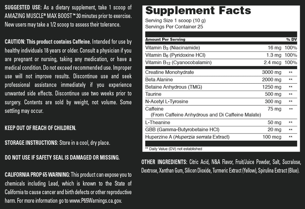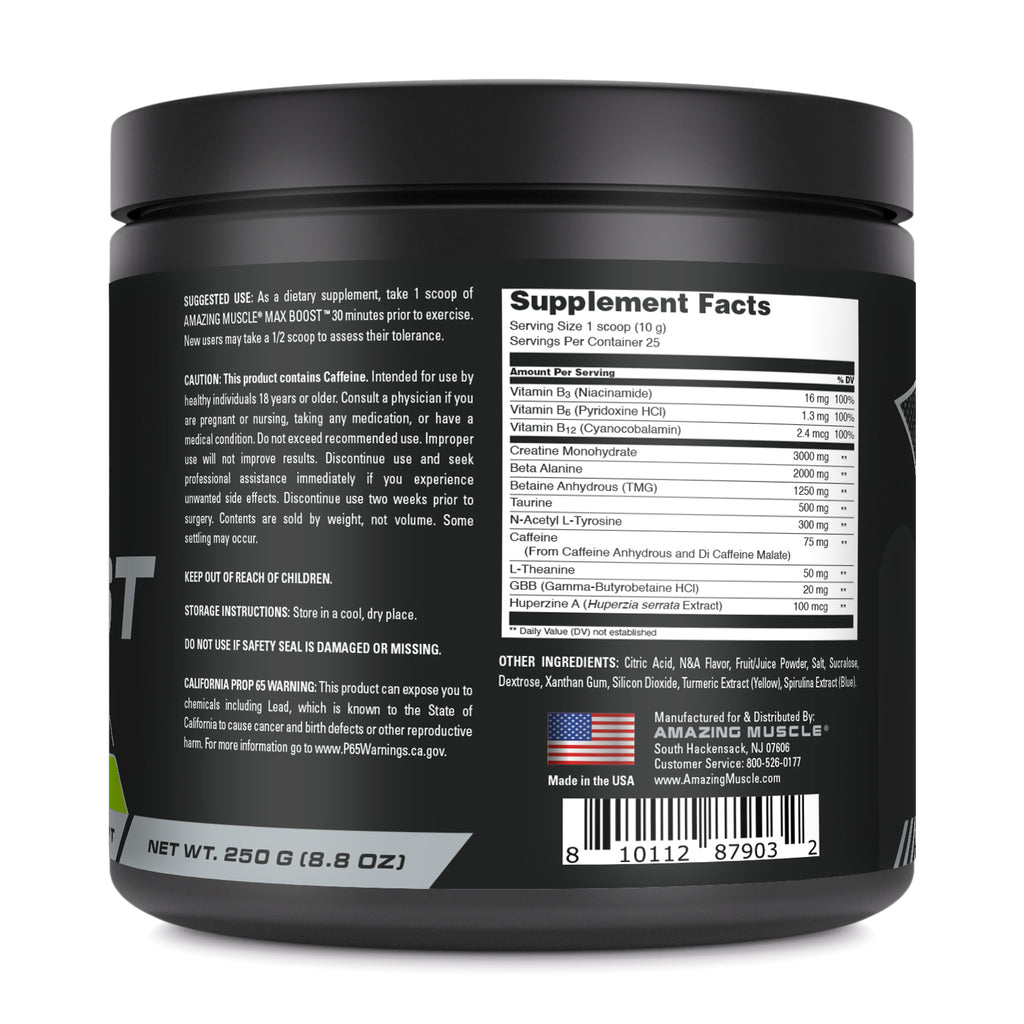 Amazing Muscle Max Boost | Intense Pre-Workout Supplement | 25 Servings| Green Apple Flavor