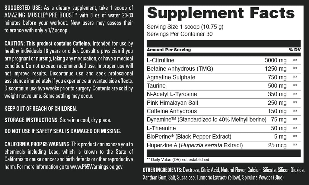 Amazing Muscle Pre Boost | 30 Servings | Pre Workout Supplement for Men & Women | Lemon Lime Flavor