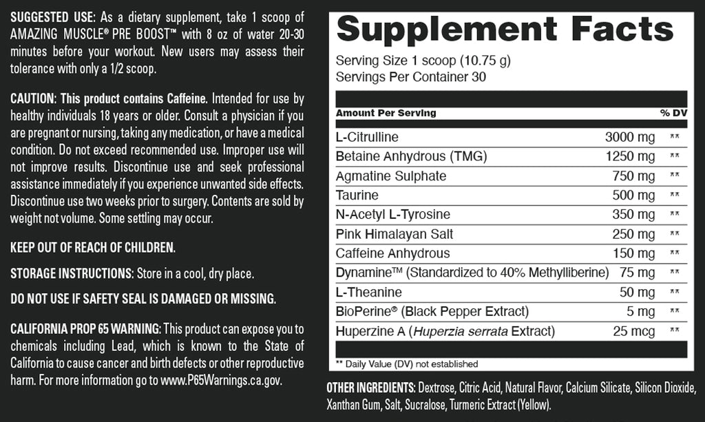 - - Pre Workout with Betaine Anhydrous (TMG), Caffeine, BioPerine, L-Citrulline & More