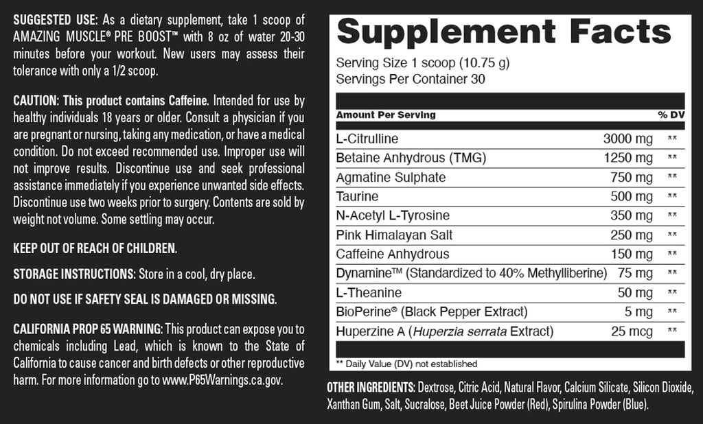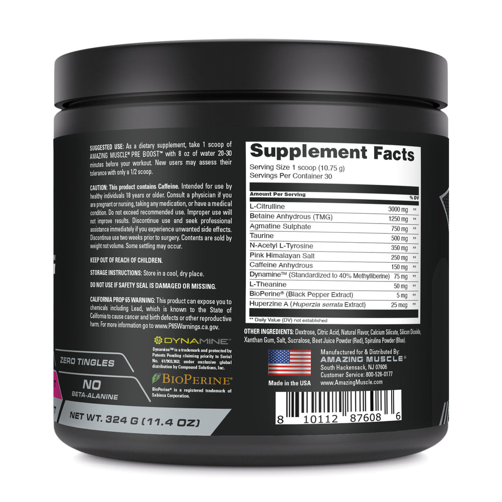 Amazing Muscle Pre Boost | 30 Servings | Pre Workout Supplement for Men & Women | Wild Berry Burst Flavor