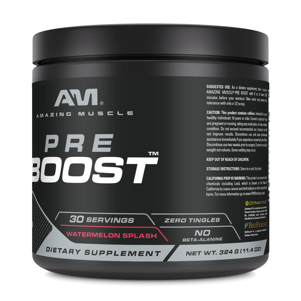 Amazing Muscle PRE-BOOST Advance Pre-Workout formula, features caffeine along with other key ingredients which in combination with one another are known to be able to give you a potent dose of energy to power you through your workout. *