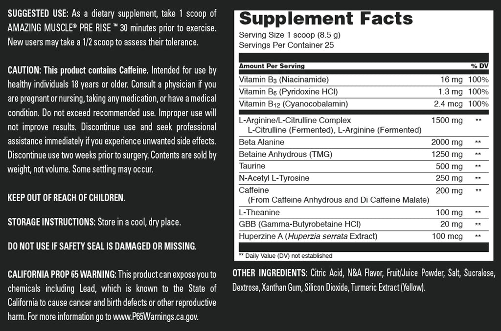 Amazing Muscle Pre Rise | Pre Workout Powder Supplement | 25 Servings | Pineapple Paradise Flavor