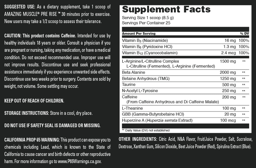 Amazing Muscle Pre Rise | Pre Workout Powder Supplement | 25 Servings | Wild Berry Burst Flavor