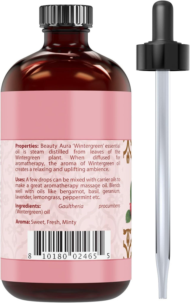 Beauty Aura Wintergreen Oil | Therapeutic Grade Essential Oil | 4 Fl. Oz (118 ml)